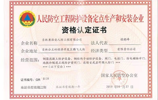 吉林省浩安人防工程有限公司是經(jīng)國(guó)家人民防空辦公室批準(zhǔn)成立的人防工程防護(hù)設(shè)備定點(diǎn)生產(chǎn)廠,2019年認(rèn)定為國(guó)家級(jí)高新技術(shù)企業(yè)。本廠擁有現(xiàn)代化的廠房及先進(jìn)的生產(chǎn)設(shè)備,集生產(chǎn)制造、質(zhì)量控制、銷售服務(wù)為一體的區(qū)域性行業(yè)廠。公司座落在吉林省公主嶺經(jīng)濟(jì)開(kāi)發(fā)區(qū),占地面積達(dá)10000平方米,辦公樓1200平方米,廠房建筑面積達(dá)6000平方米以上,注冊(cè)資金1000萬(wàn)元,企業(yè)的技術(shù)力量雄厚,其中防護(hù)工程師,高級(jí)工程師及中高級(jí)專業(yè)技術(shù)人員占30%。青海分公司2018年10月15日成立,于當(dāng)年11月26日通過(guò) 青海人民防空辦公室備案公示。 本廠經(jīng)營(yíng)的主要產(chǎn)品:連續(xù)玄武巖纖維新型人防防護(hù)門(mén)、鋼結(jié)構(gòu)人防防護(hù)門(mén)、鋼筋混凝土人防防護(hù)門(mén)以及各種型號(hào)的通風(fēng)設(shè)備和防化設(shè)備。本廠生產(chǎn)設(shè)備齊全,擁有雄厚的生產(chǎn)能力和技術(shù)水平,并嚴(yán)格按照國(guó)家相關(guān)標(biāo)準(zhǔn)生產(chǎn)和安裝。2015年5月15日正式開(kāi)業(yè)至今,承接吉林省人防工程項(xiàng)目上百項(xiàng),總施工面積超過(guò)百萬(wàn)平方米。工程項(xiàng)目包含人防指揮所、醫(yī)院、地下商場(chǎng)、商場(chǎng)、學(xué)